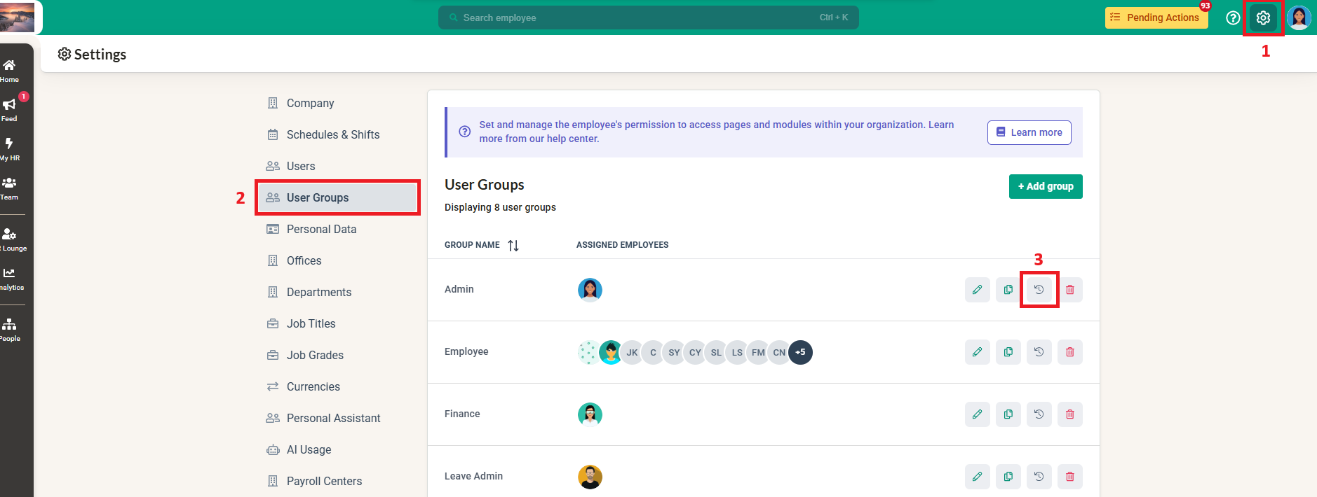 Navigate to Settings > User Groups.